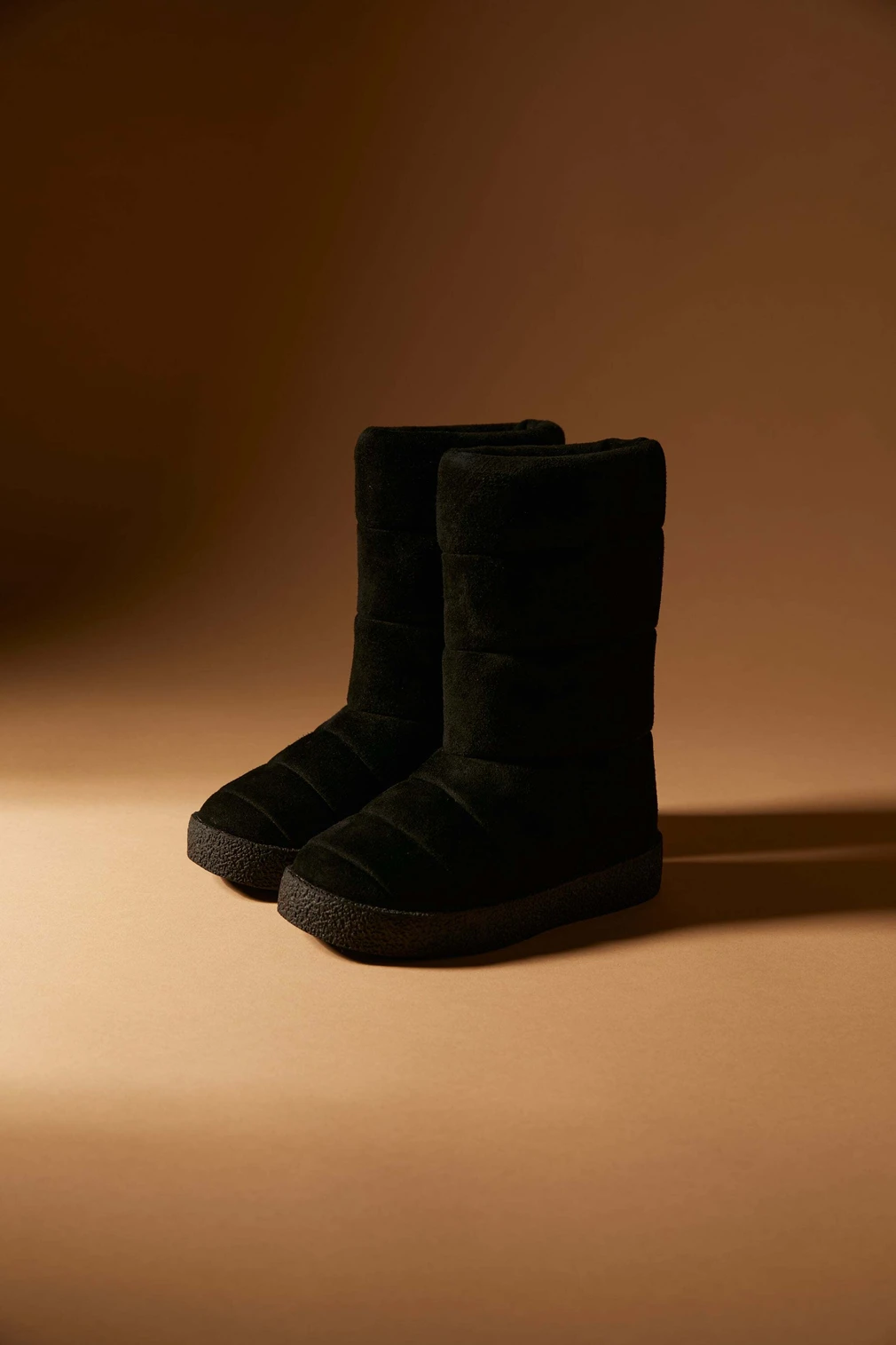 Новое прочтение всеми любимых "дутых" сапог в черной и шоколадной замше на толстой подошве. Самые теплые, легкие и удобные зимние сапоги, которые вы когда-либо встречали! Заправляйте в них джинсы, узкие брюки и легинсы и гуляйте целыми днями напролет!