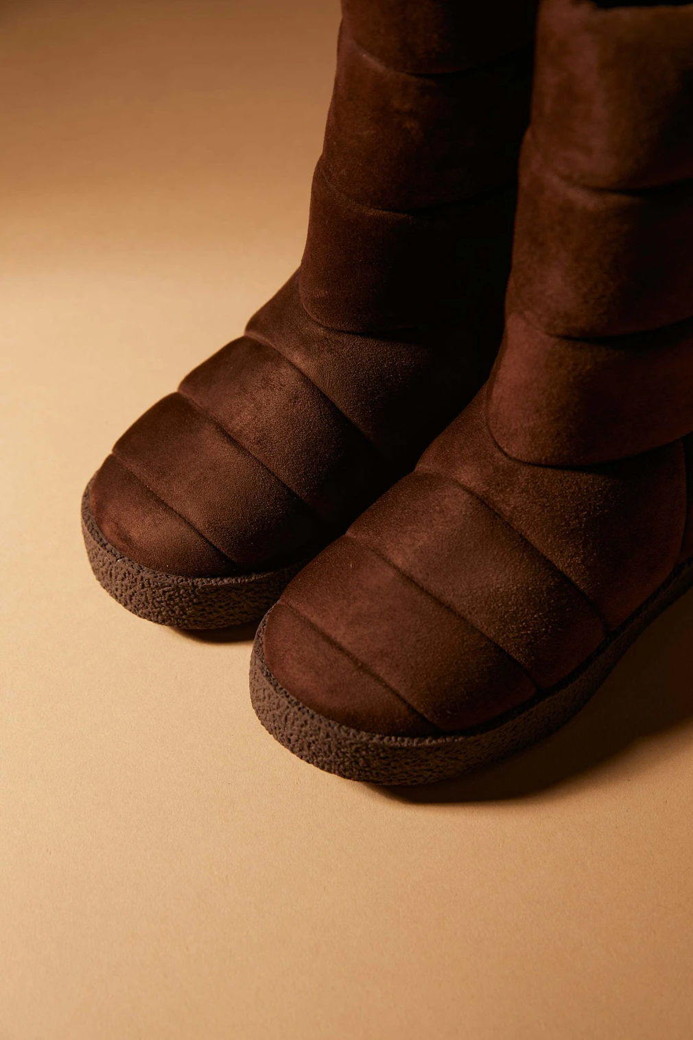 Новое прочтение всеми любимых "дутых" сапог в черной и шоколадной замше на толстой подошве. Самые теплые, легкие и удобные зимние сапоги, которые вы когда-либо встречали! Заправляйте в них джинсы, узкие брюки и легинсы и гуляйте целыми днями напролет!