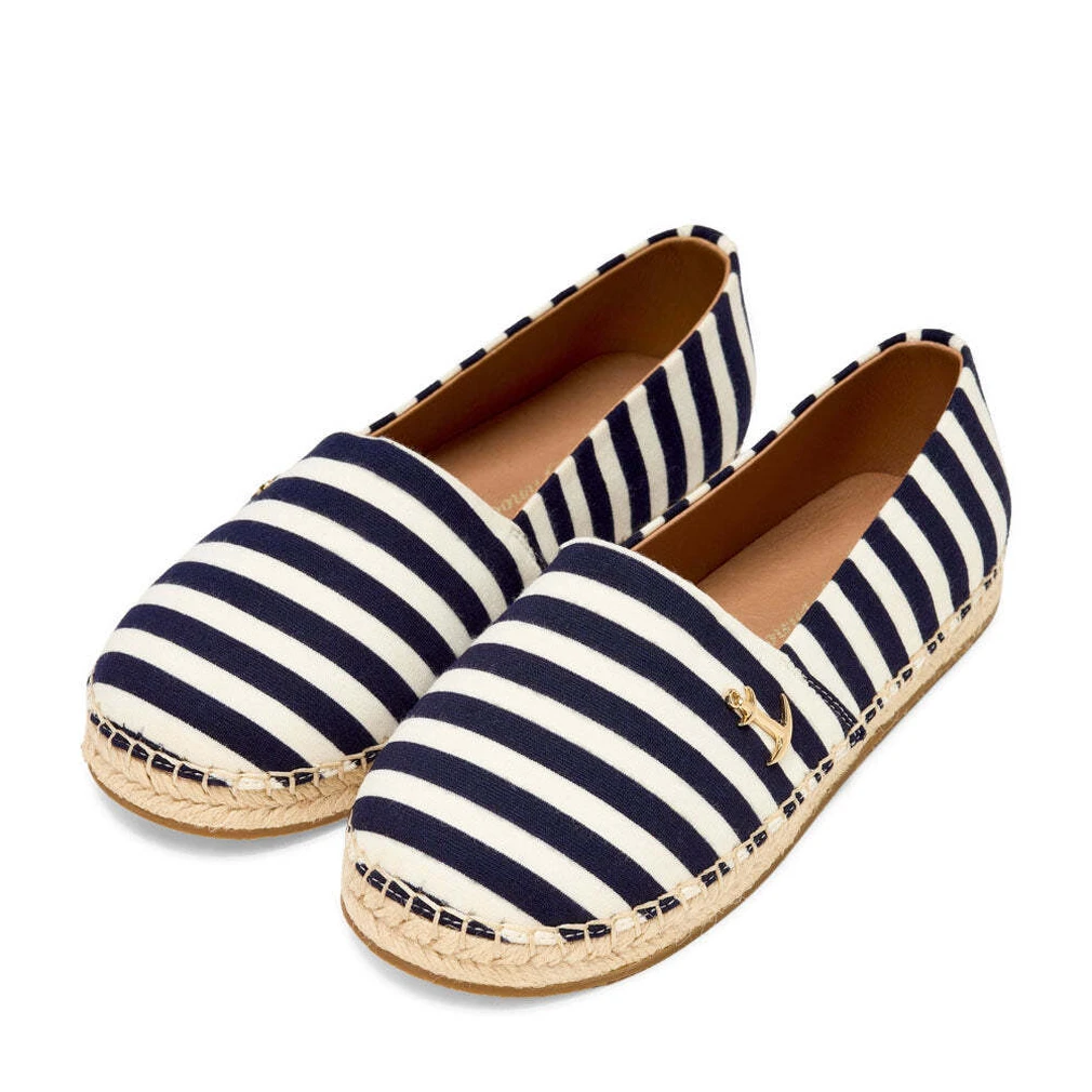 Эти лоферы (или, точнее, эспадрильи) — самая любимая летняя обувь детей после кед. Но в отличие от последних, эспадрильи Marlene значительно комфортнее, легче и экологичнее. Наша модель выполнена из плотной дышащей ткани на плетёной подошве — идеальна для долгих прогулок и в городе, и на море. Отдельный повод для любви — морская полоска и миниатюрный вышитый якорь. Ваш ребёнок точно влюбится!