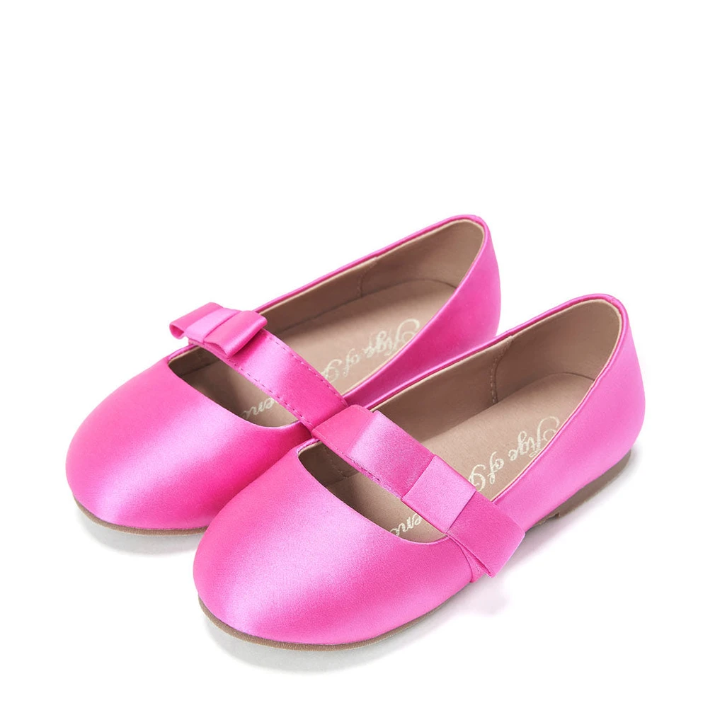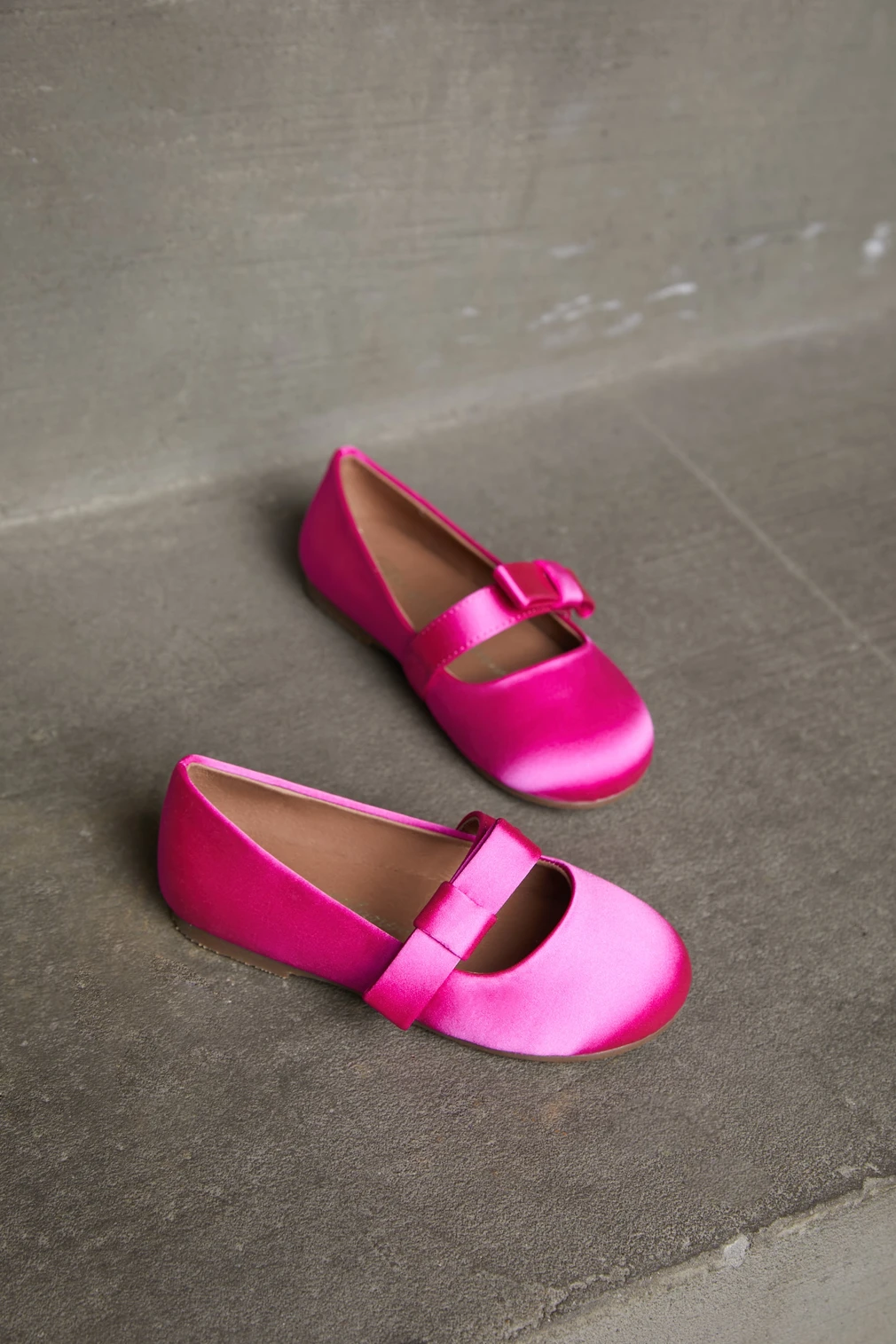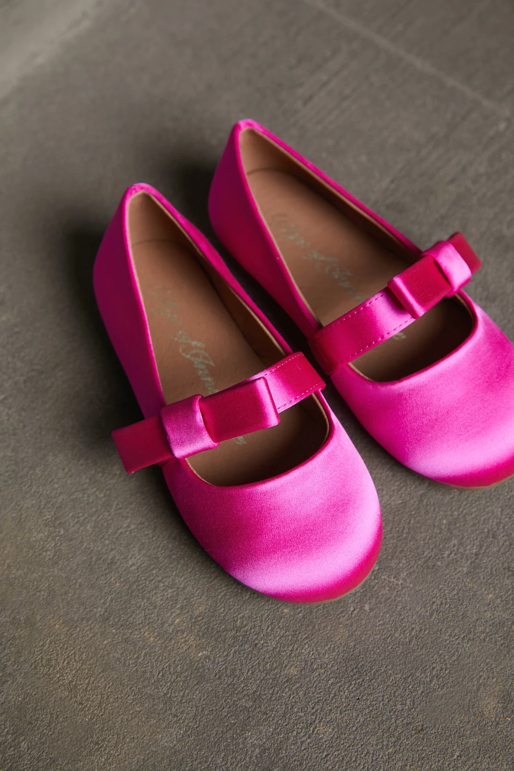 Туфельки Mia Satin изготовлены из атласной ткани разных оттенков и декорированы маленьким прямоугольным бантиком. Стелька из натуральной мягкой кожи и рифленый протектор делают эту модель не только красивой, но и удобной. Они будут хорошо смотреться и с нарядным платьем, и с джинсами и белой рубашкой.