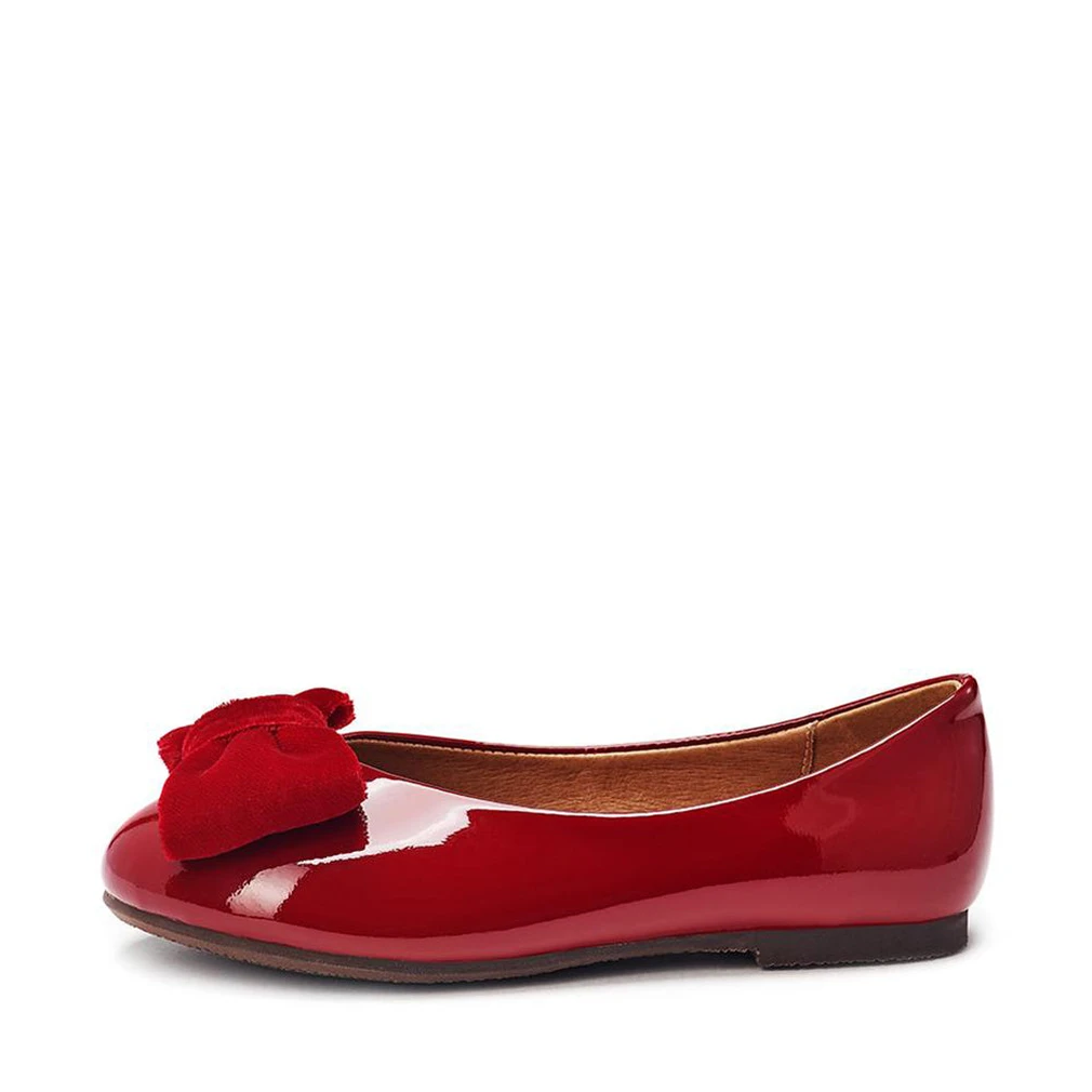 Красные туфельки Mina изготовлены из натуральной лакированной кожи и декорированы элегантным бархатным бантом. Сочетание яркого глянца лакированной кожи с глубоким, матовым отливом бархата делают эти туфельки очаровательными и «по-взрослому» элегантными. Туфельки Mina хорошо будут смотреться и в повседневной жизни, например, со школьной формой, и с нарядным платьем.