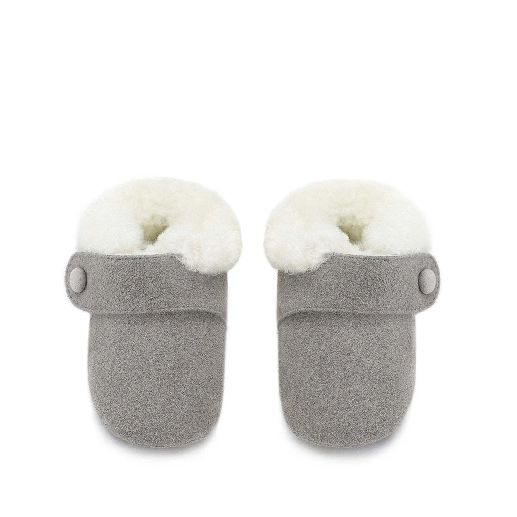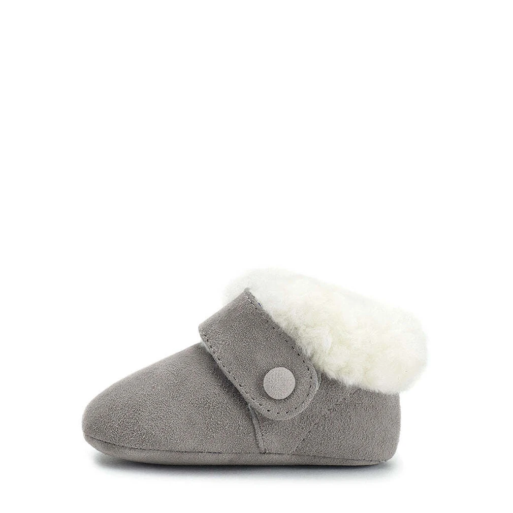 Познакомьтесь с нашей новой моделью — теплыми пинетками MiniMuni. Они изготовлены из мягкой замши и утеплены натуральной овчиной. Пинетки застегиваются на удобный ремешок с застежкой велькро. MiniMuni — идеальная первая зимняя пара обуви для малыша.