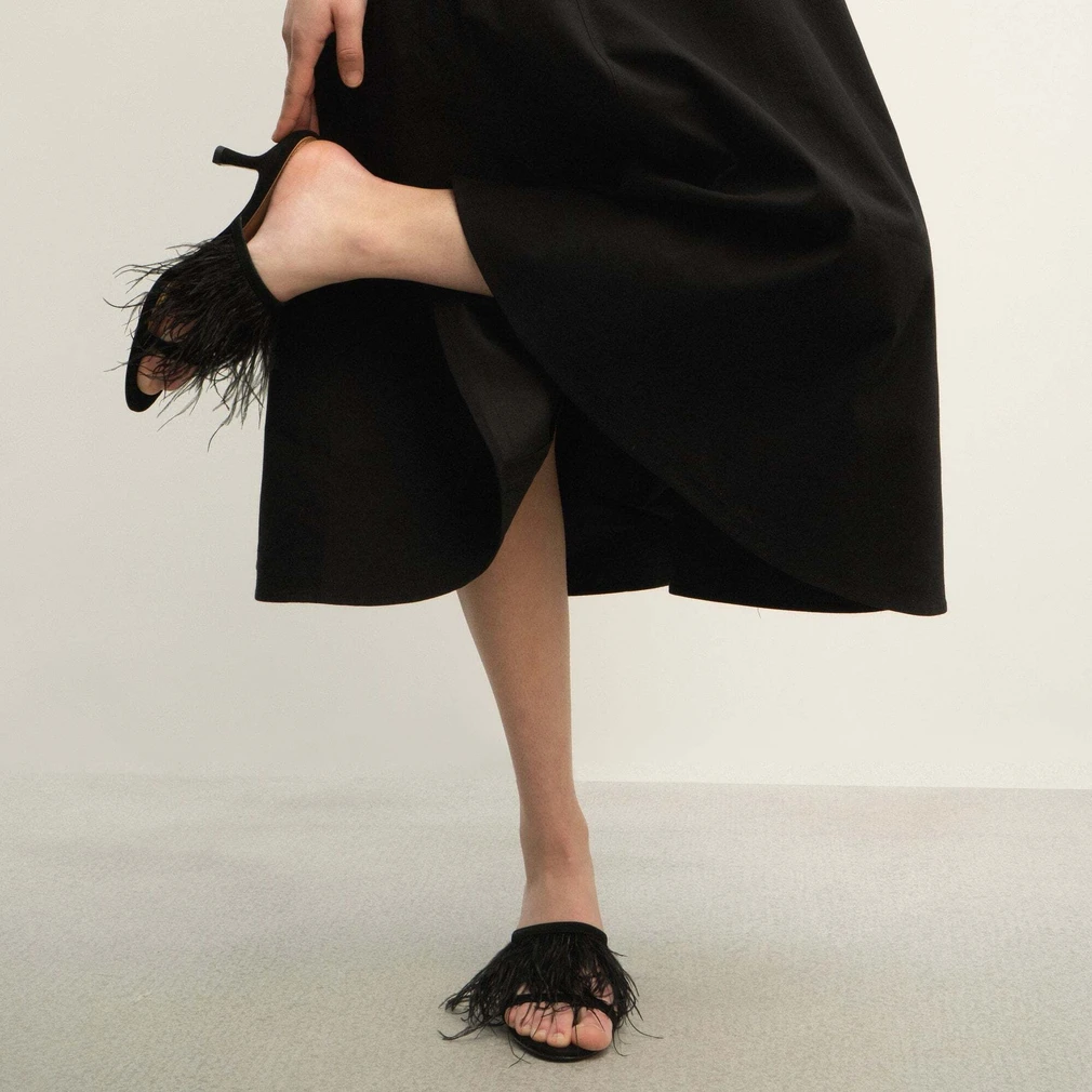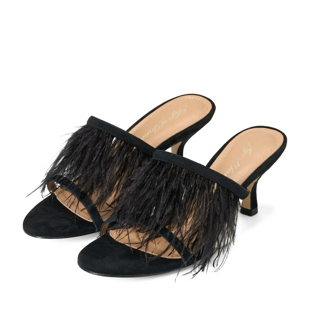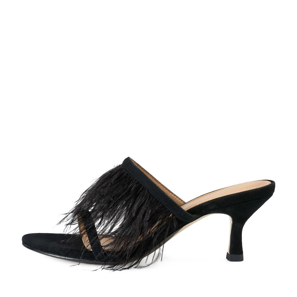 Говорим «летящая походка» — подразумеваем мюли Mylene. Лёгкий и парящий эффект этой открытой летней модели создают два тонких ремешка, небольшой каблучок и, конечно, перья, которые взлетают при каждом вашем шаге. Очень эффектное зрелище и невероятные тактильные ощущения гарантированы.
