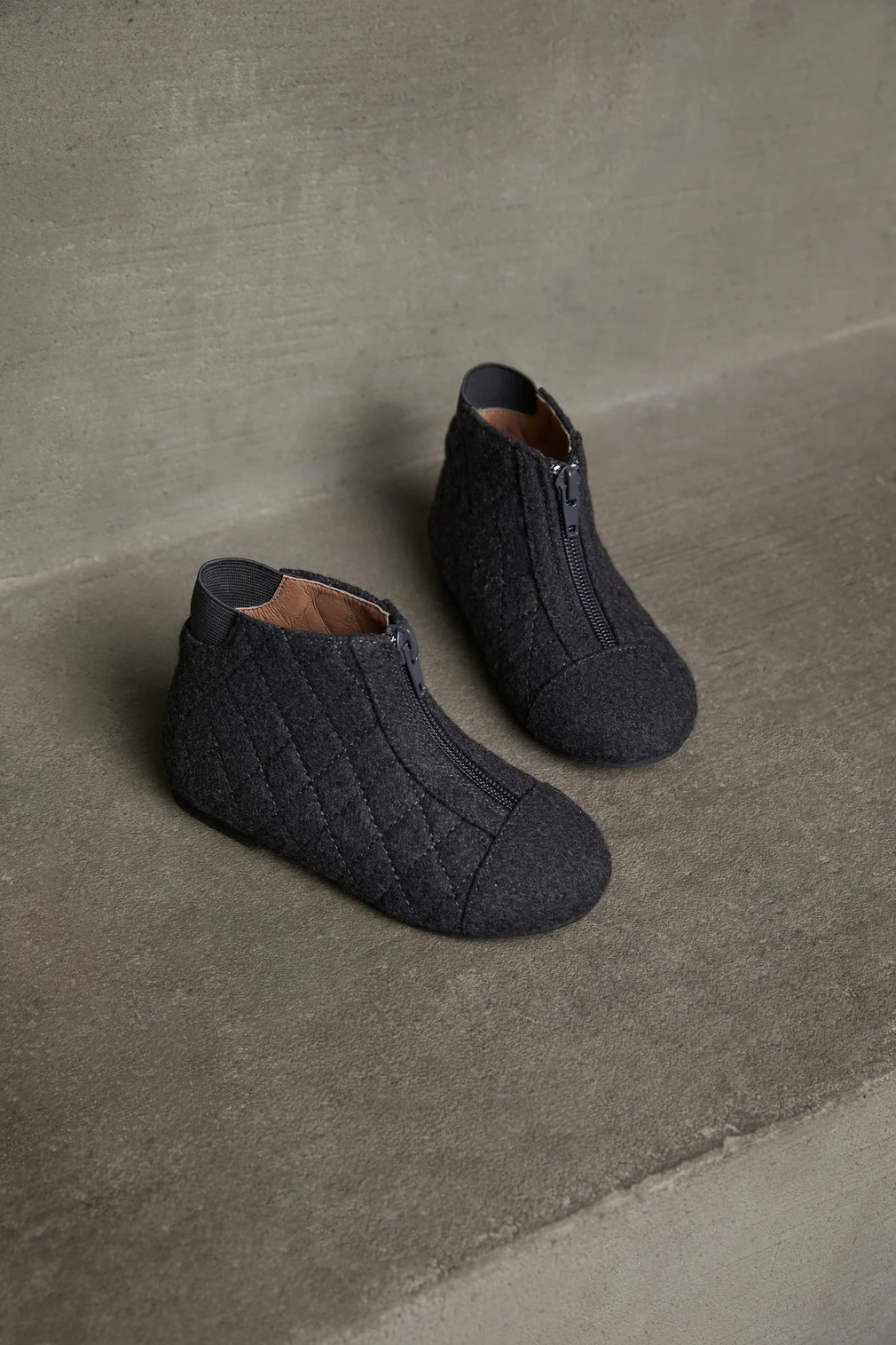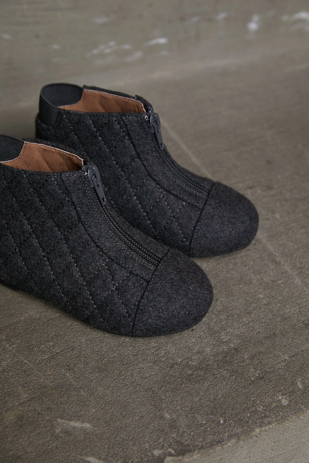Ботиночки Nicole Wool обтянуты мягкой шерстью с диагональной простежкой. Внутри у них плотная натуральная кожа, поэтому они прекрасно держат форму. Ботиночки очень легкие, удобные и хорошо сочетаются с платьями, тренчем или легким пальто.