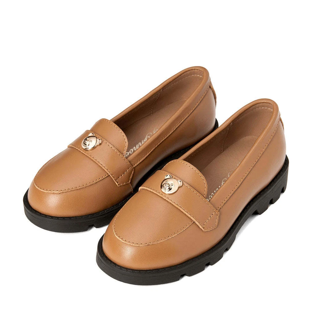 Еще одна супер-стильная и очень классная модель в нашей коллекции лоферов. Плотная натуральная кожа, толстая, резиновая подошва с протектором, классический силуэт и очаровательный позолоченный мишка — уверены, что эти лоферы полюбят все школьницы. Носите их с юбками в складку и гольфами, платьями из тонкой шерсти и укороченными брюками.