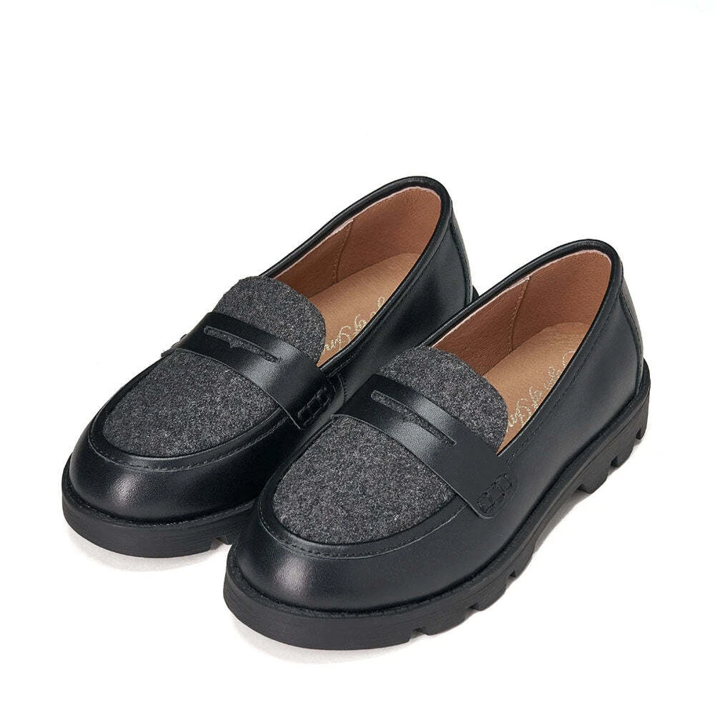 Лоферы Paula занимают особое место в нашей новой коллекции, потому что это идеальная обувь для школьных образов. Версию 2.0 мы создали для тех, кто любит выделяться на общем фоне и ценит необычные детали. Изготовленные из натуральной кожи с вставками из шерсти цвета графита, лоферы прекрасно сочетаются с юбками в складку, с укороченными брючками любого объема, а также с джинсами.