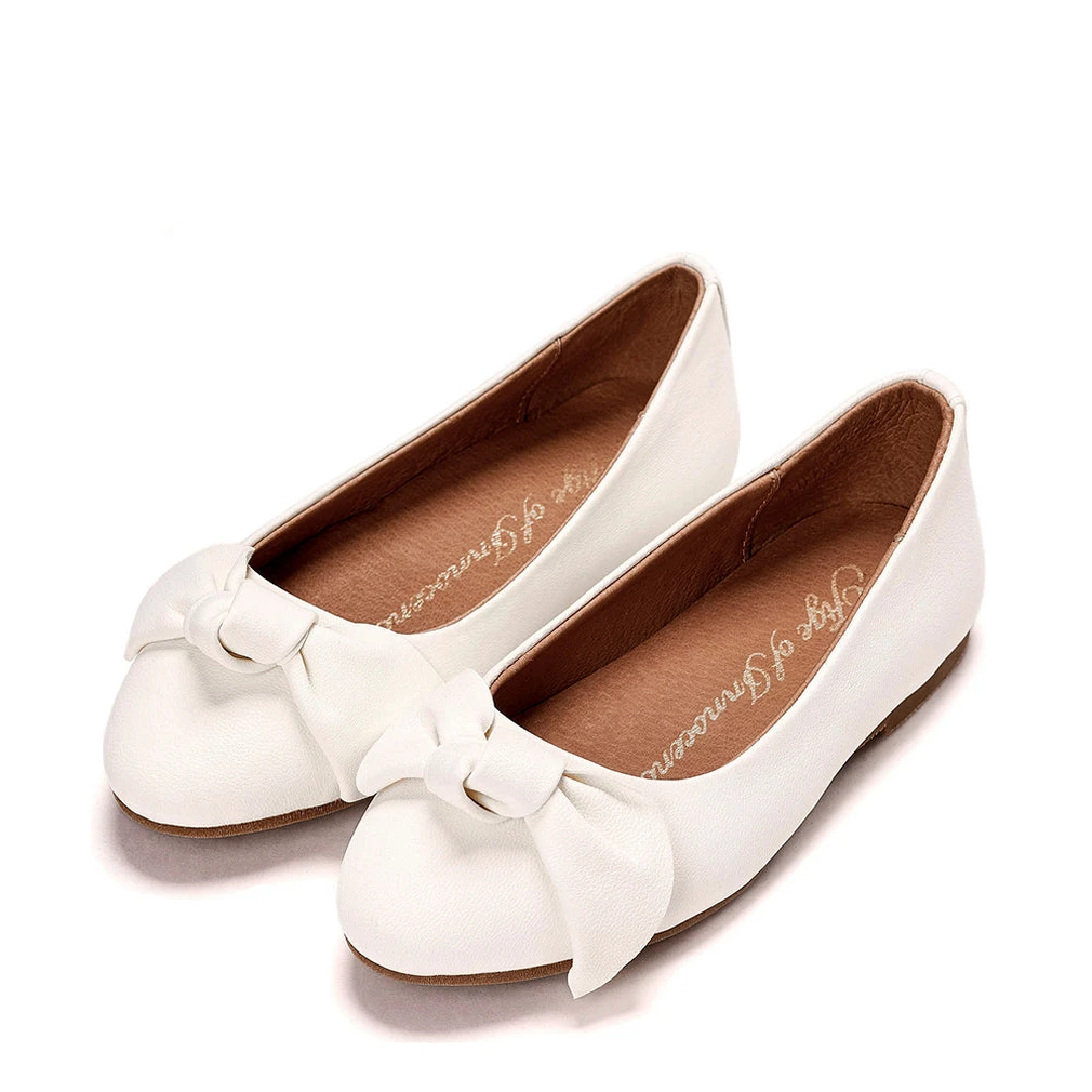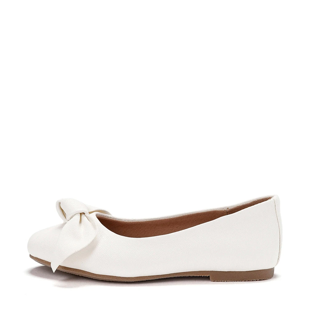 Классические балетки из кожи белого цвета с слегка зауженным носом и легкомысленным бантиком-узлом. Легкие, мягкие, очень удобные и незаменимые во время весенних и летних прогулок. Носите их с джинсами, шортами, платьями и брюками и наслаждайтесь отпуском!