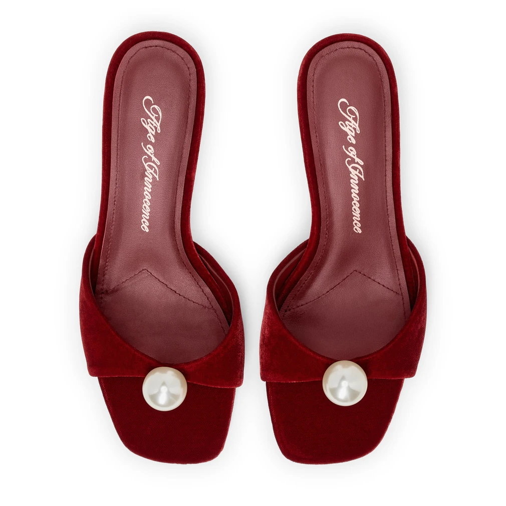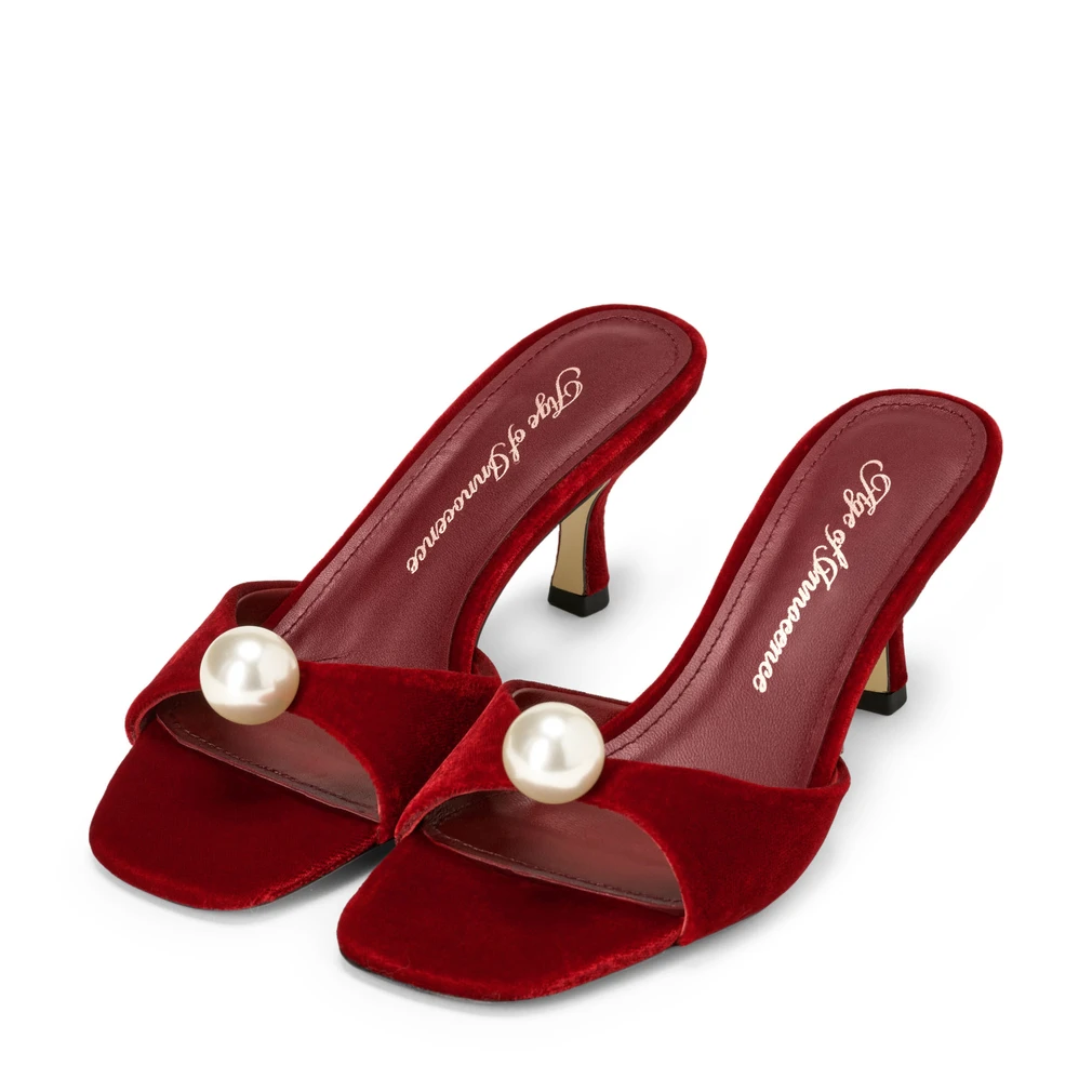 Классический красный бархат и крупная декоративная жемчужина дополнят ваш самый роскошный образ. Мюли Sybil — это квинтэссенция вневременной классики и наш оммаж Одри Хепберн в «Завтраке у Тиффани». Эта модель — то самое маленькое чёрное платье (в алом варианте) в вашей коллекции обуви, без которого не обойтись.
