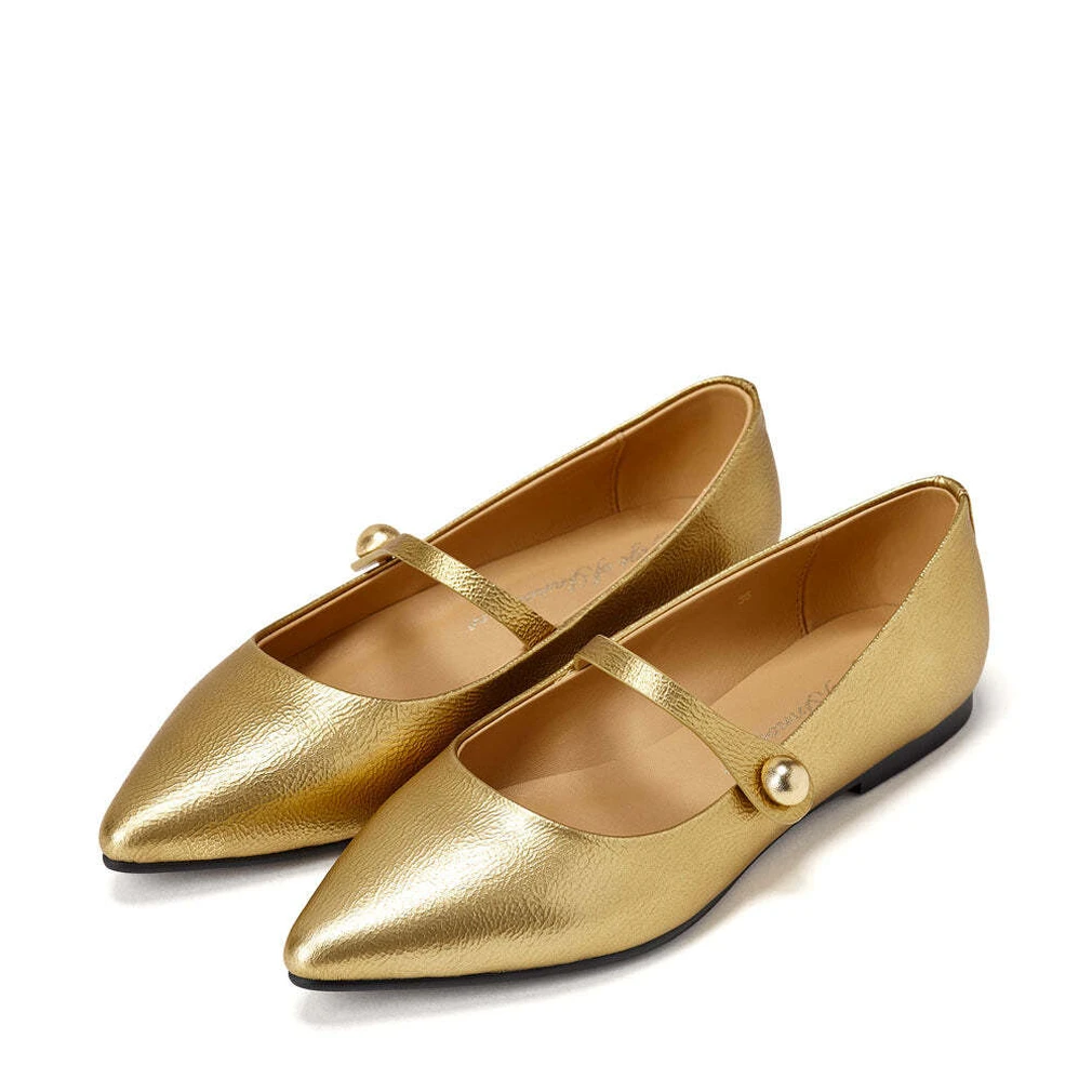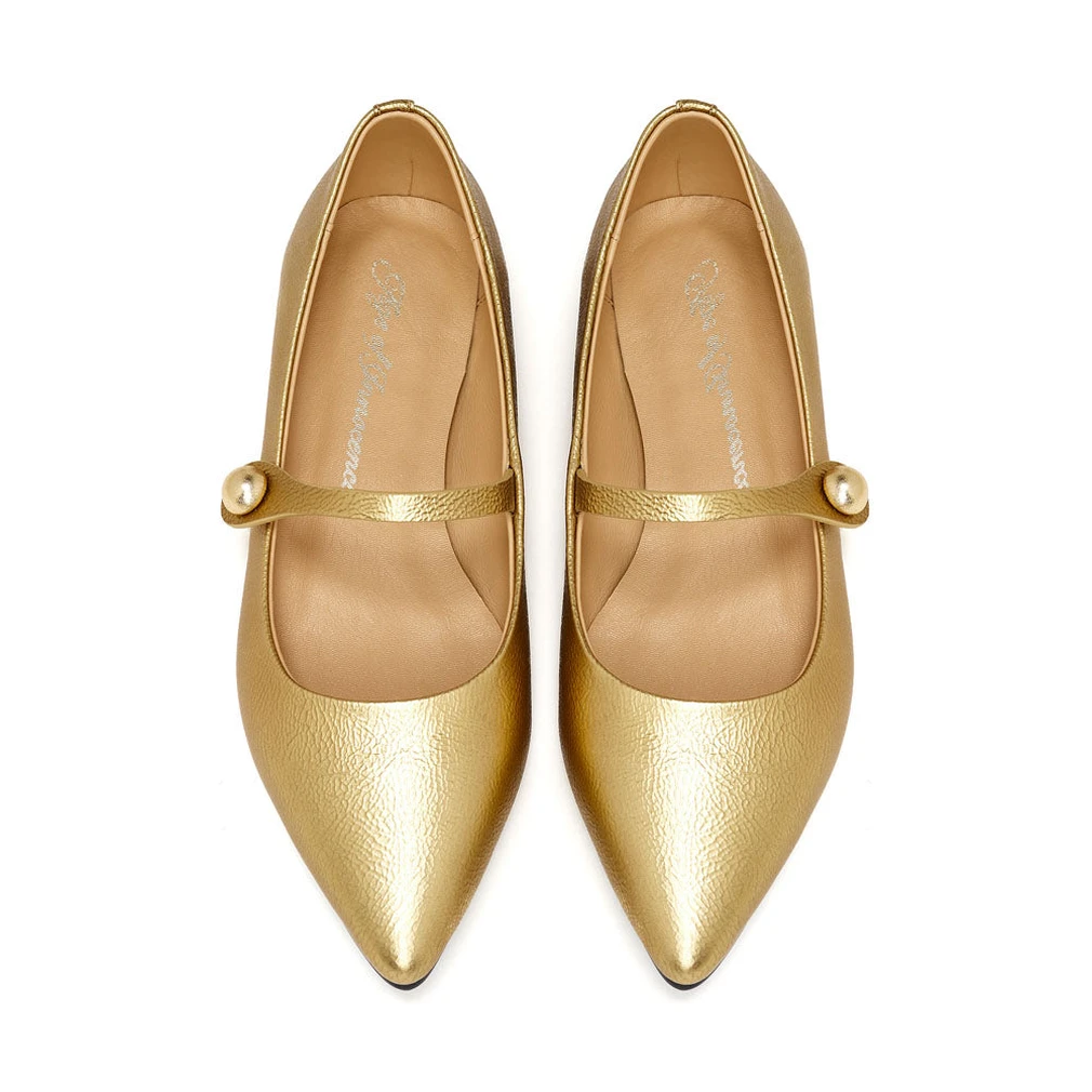 Удобные, как балетки, элегантные, как классические лодочки, и вдвойне эффектные благодаря фактурной позолоченной коже туфли Thea будут очаровательно смотреться как с узкими укороченными брючками, так и юбками-колокольчиками в стиле 50-х. Комфортная плоская подошва, заостренный нос, застежка в стиле Mary Jane и крохотная декоративная пуговка — в этой модели есть все, чтобы завоевать и ваше сердце, и гардероб.