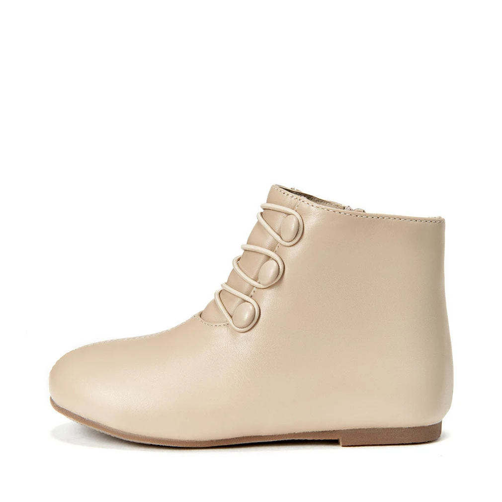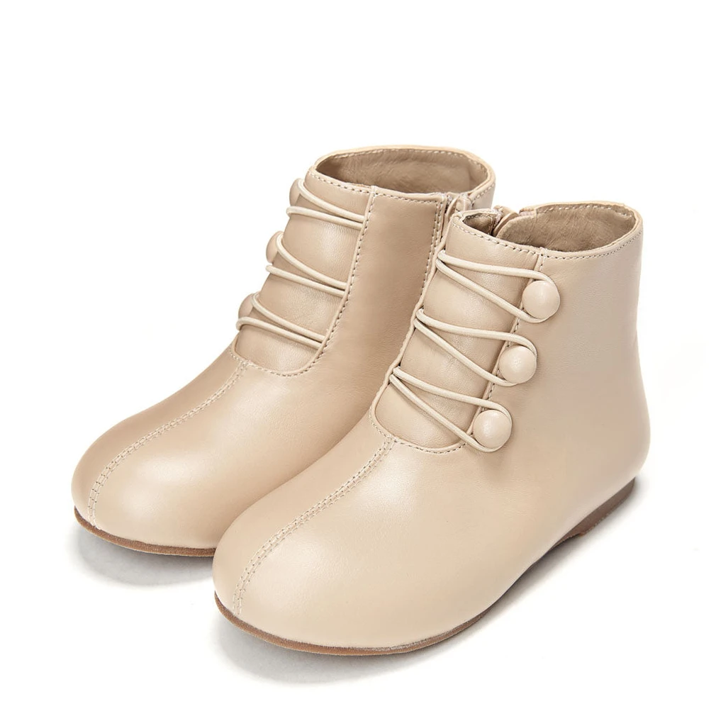 Ботиночки Vivian выполнены из мягкой натуральной кожи бежевого цвета. Дизайн ботиночек имеет легкий винтажный оттенок благодаря декоративной застежке на пуговицы. Функциональная застежка-молния находится на внутренней боковой части ботиночек. Рекомендуем носить их с укороченными брючками и обычной белой рубашкой.