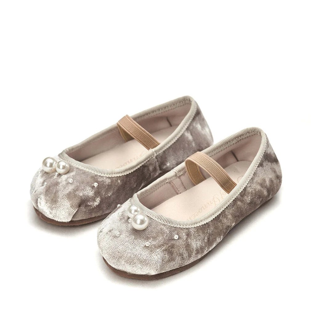 Нежные балетки Zelda изготовлены из мягкого серого бархата и декорированы жемчужинами разного размера. Стелька из натуральной мягкой кожи и эластичный ремешок создают дополнительный комфорт. Эти нежные балетки будут идеально смотреться с воздушными летними платьями или джинсами.