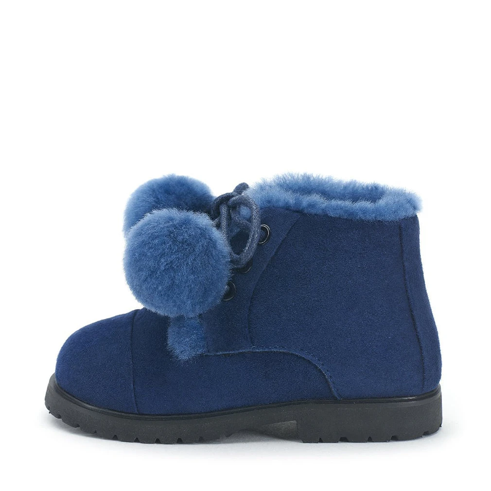 Стильные и удобные синие замшевые ботиночки Zoey — наши фавориты. Сделанные из мягкой натуральной замши, со 100% овчиной и с толстой рифленой подошвой ботиночки Zoey идеальны для прогулок. Декорированные шнуровкой c меховыми шариками в цвет обуви ботиночки чудесно будут смотреться с платьями, юбками и теплыми колготками.